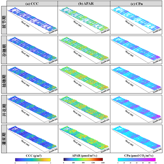 光合作用是作物生长和产量形成的物质基础。快速、实时地监测光合参数对作物营养诊断、胁迫监测、光能利用和产量预测具有重要意义。传统被动光学遥感方法已被证明可有效的监测作物光合性状。然而,该方法只能获取作物二维光合性状,难以获取作物三维光合性状。本研究利用激光雷达(Light detection and ranging, LiDAR)点云和多光谱影像进行融合,生成作物多光谱点云,从而估算作物光合相关参数的三维空间分布。