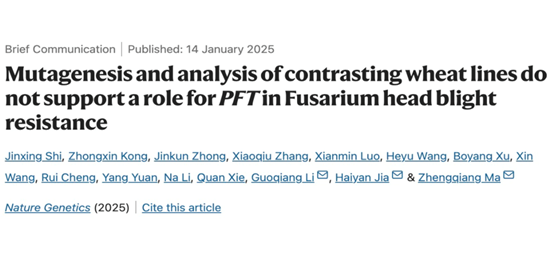 《Nature Genetics》发表马正强教授团队“Mutagenesis and analysis of contrasting wheat lines do not support a role for PFT in Fusarium head blight resistance”