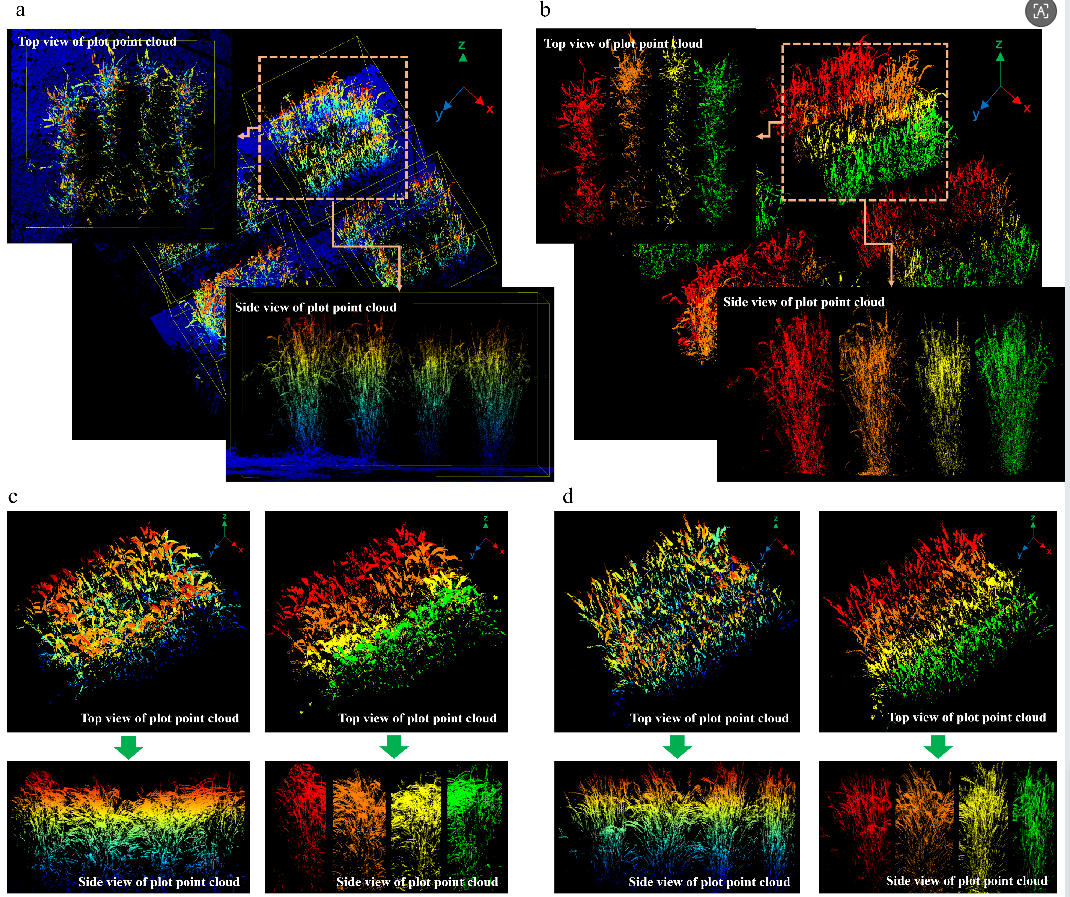 研究背景:目前,无人机系统对小麦不同生育时期的表型数据采集主要依赖二维图像。虽然二维影像能够提取冠层高度、冠层面积等重要表型参数,但由于其本质上缺乏深度信息,在高密度种植条件下往往难以准确识别行间边界,从而限制了对试验小区的精细划分。相比之下,三维图像因包含丰富的空间结构信息,在密植田间环境中更具处理优势,更有利于实现小区级的自动化分析。因此,基于无人机系统的三维图像数据构建小麦生育时期的自动化表型分析流程,已成为值得重点关注的研究方向。