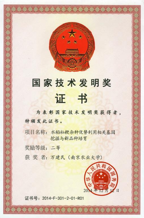 获发明专利7项、植物新品种权8项,发表论文71篇,在Nature、PNAS、Plant Cell等发表SCI论文41篇,他引220次。