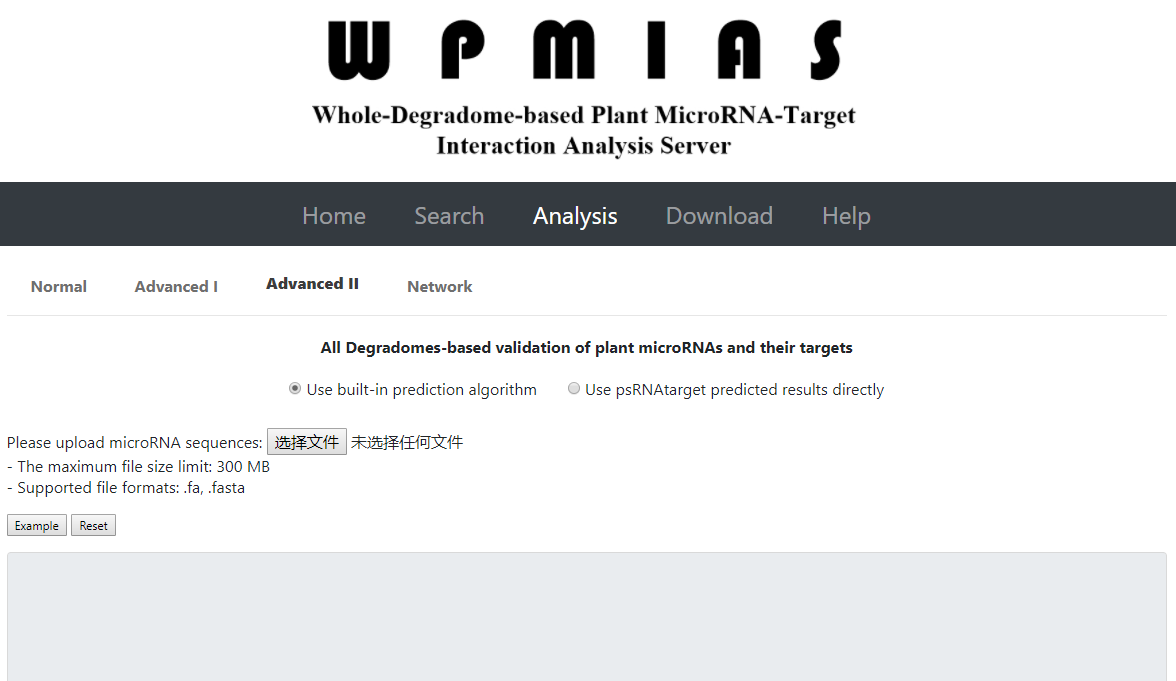 研究microRNA或其他非编码RNA生物学功能的一个关键之处就是准确鉴定它们的靶基因。已经有一些在线或本地的microRNA靶基因预测程序,但是还没有一个方便和高效的基于web的靶基因预测和验证服务或程序。本实验室2018年报道了一个植物miRNA和靶基因互作和调控网络数据库DPMIND(Fei et al., Bioinformatics, 2018),包含了验证了的已知植物miRNA和靶基因的互作关系。但是DPMIND只能查询已有miRNA的靶基因,不够灵活。本研究构建了一个新的基于web的miRNA靶基因预测和验证平台WPMIAS。该平台基于所有已知的植物降解组数据,可以一次性地预测miRNA的靶基因并通过所有已知的该植物降级组对miRNA和靶基因的互作关系进行验证。通过验证,用户除了可以确认miRNA的靶基因之外,还可以了解这种miRNA-target互作在什么时空条件下发生已经这种互作和切割的程度,因此用户可以构建该植物的miRNA-target互作图谱,并可以找到进一步的miRNA研究线索。目前WPMIAS支持64个植物物种,除了miRNA之外还支持其他能够切割靶基因的小RNA,比如21nt phase siRNA, nat-siRNA等。