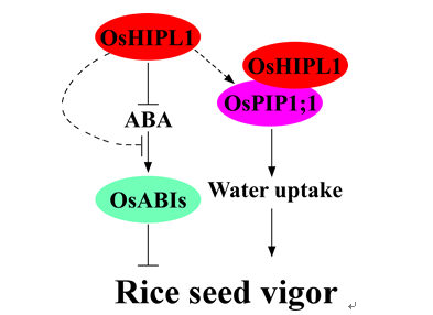 番号鸽 张红生教授团队一直致力于水稻种质资源创新、种子活力形成关键基因发掘和分子调控等研究。其团队利用一个染色片段置换系群体,在籼稻品种IR26中,鉴定到一个正调控水稻种子活力的主效QTL(Quantitative Trait Locus)qSV3。通过精细定位和图位克隆,并构建候选基因敲除突变体、回补和过表达等转基因材料,验证了qSV3位点候选基因编码一个刺猬互作蛋白类似蛋白OsHIPL1(hedgehog-interacting protein-like 1 protein)。在哺乳动物中,该蛋白作为信号转导靶点,作用于胚胎发育和肿瘤细胞代谢过程,在植物中未见该类基因的相关报道。研究发现,与对照(粳稻中花11)材料相比,构建的候选基因突变体Oshipl1和近等基因系NIL-qsv3材料的种子,在萌发过程中的内源脱落酸(ABA)合成相关基因(OsZEP和OsNCED4)表达上调,分解相关基因(OsABA8ox3)表达下调,内源ABA的含量显著增加。这些结果与转录组与种子萌发过程外施ABA的结果一致,说明OsHIPL1可能通过抑制ABA代谢和信号通路促进水稻种子萌发。利用酵母双杂交、BiFC和LUC等试验,发现OsHIPL1蛋白能与水稻水孔蛋白OsPIP1;1互作;与野生型材料的种子相比,突变体Oshipl1种子萌发中的吸水速率显著下降,回补和过表达转基因材料种子吸水速率显著提高;同时,Oshipl1的OsPIP1;1基因在突变体中的表达显著下降,在回补转基因材料中显著上升。表明,OsHIPL1不仅能够通过ABA代谢和信号途径调控水稻种子活力,还能够通过影响水孔蛋白OsPIP1;1调节种子萌发过程中的水分吸收,提高水稻种子活力。在温室试验和田间直播试验条件下,OsHIPL1可以显著提高水稻种子活力,利用已测序192份水稻种质资源,鉴定了OsHIPL1基因的优异单倍型Hap1,可以显著提高水稻种子活力。