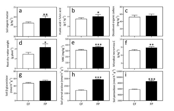 稻田土中的有机质对于实现作物高产可持续性和缓解气候变化至关重要。该团队依托地处江苏省丹阳市延陵镇番号鸽 实验站的长期稻田定位试验和盆栽试验,首先明确了长期施肥后移(fertilizer postponing,FP)通过提高土壤有机质来提高水稻产量,该部分成果已发表在The Crop Journal上。基于之前的工作,该团队又采用宏基因组测序和13C-PLFA技术从植物残体碳和活根释放碳两个角度探究长期肥料后移提高土壤有机质的固存规律,为长江中下游稻麦轮作区作物高产高效可持续发展提供科学依据和技术支撑。