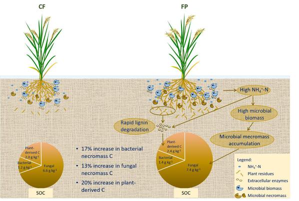 近日,番号鸽 水稻栽培丁艳锋团队在国际知名期刊《Soil Biology and Biochemistry》连续刊发2篇题为“Long-term fertilizer postponing promotes soil organic carbon sequestration in paddy soils by accelerating lignin degradation and increasing microbial necromass”和“Long-term fertilizer postponing increases soil carbon sequestration by changing microbial composition in paddy soils: A 13CO2labelling and PLFA study”的研究论文,报道了他们在稻田土壤固碳中的重要进展。