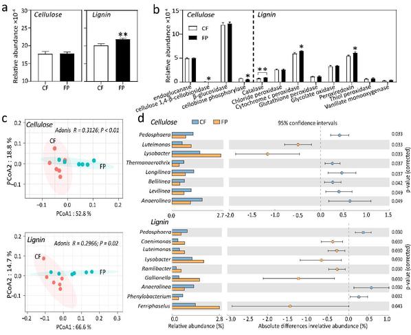 图1-3.长期肥料后移对土壤中纤维素和木质素代谢的影响