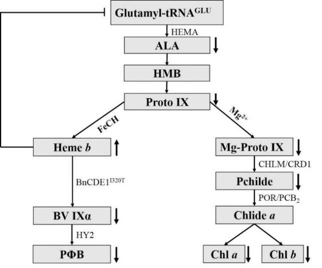 图2. BnCDE1I320T通过反馈抑制途径调控叶绿素生物合成