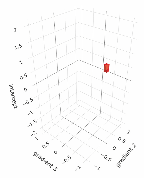 直线检测是物体识别的基础,在人工智能和计算机视觉中具有举足轻重的地位。当拓展到三维甚至更高维度的数据空间时,霍夫变换对应的检测目标是平面和超平面(hyperplane)。但是由于“数据维度的诅咒”,在多维空间中相应算法的计算量和复杂度往往呈指数级的增加。目前,由IBM公司的Li等人于1986年提出的快速霍夫变换专利算法是该领域唯一可用的算法,该算法被一些通用的计算机图像处理类库如gandalf开源实现并获得广泛应用。但该算法具有重大缺陷,一是其数学模型使用同数据维度相等数量的参数子空间,同一目标可能会投射到多个子空间中,需要额外算法检测冗余目标;二是算法精度在参数空间非均匀分布,存在众多检测效率谷点。