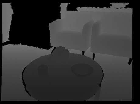图二. Kinect拍摄的三维RGB-D图片、深度图及一体化快速霍夫变换检测检测出来的平面