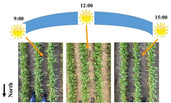 日内不同时刻的田间测试场景照片
