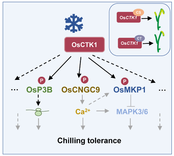 《New Phytologist》发表植物环境适应分子遗传研究课题组“A major gene for chilling tolerance variation in Indica rice codes for a kinase OsCTK1 that phosphorylates multiple substrates under cold”