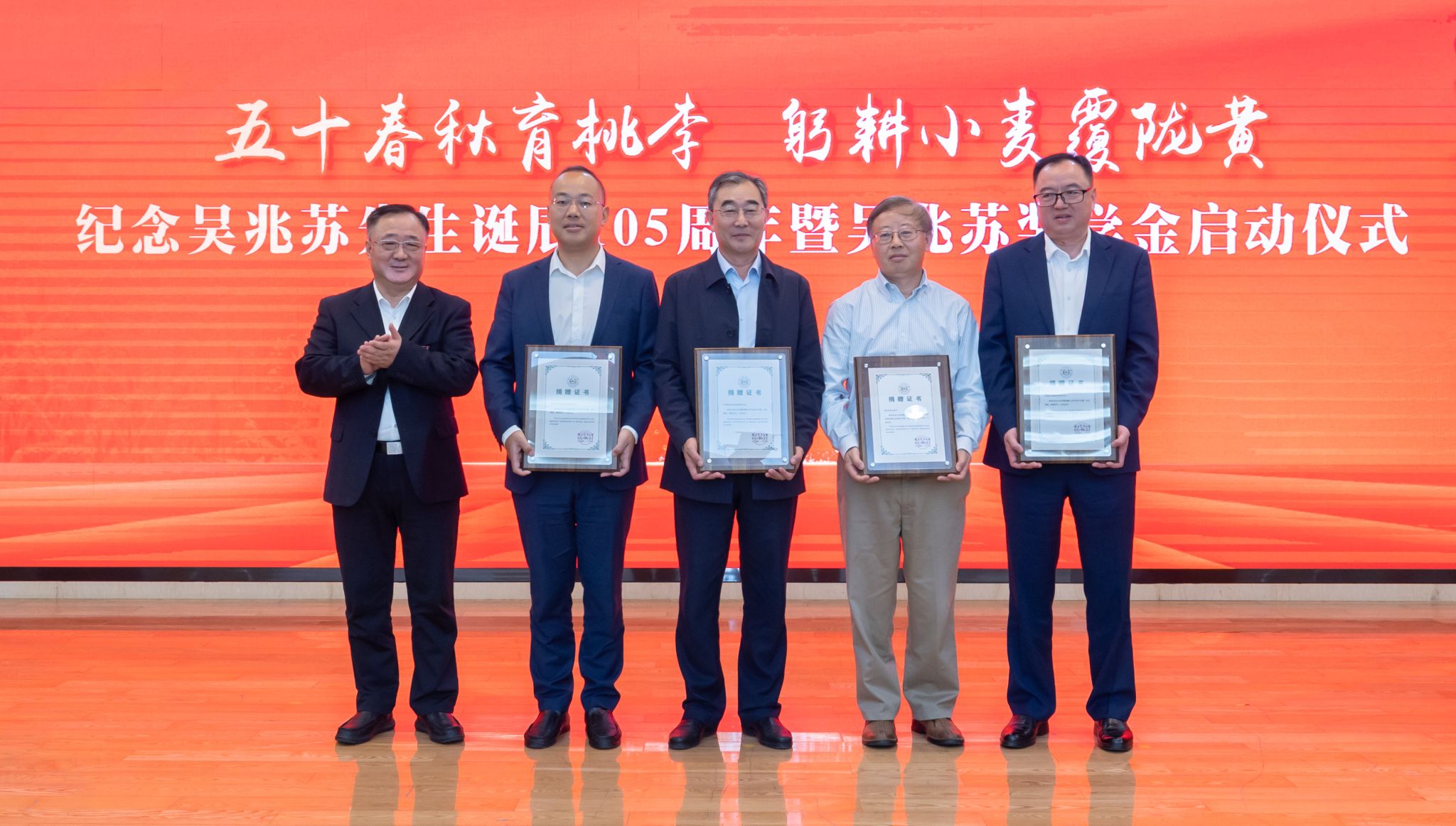 此外,会上还为江苏金土地种业有限公司、江苏明天种业科技股份有限公司、江苏瑞华农业科技有限公司和吴兆苏先生弟子代表等颁发捐赠证书,举办了2024年度番号鸽 吴兆苏奖学金颁奖仪式。