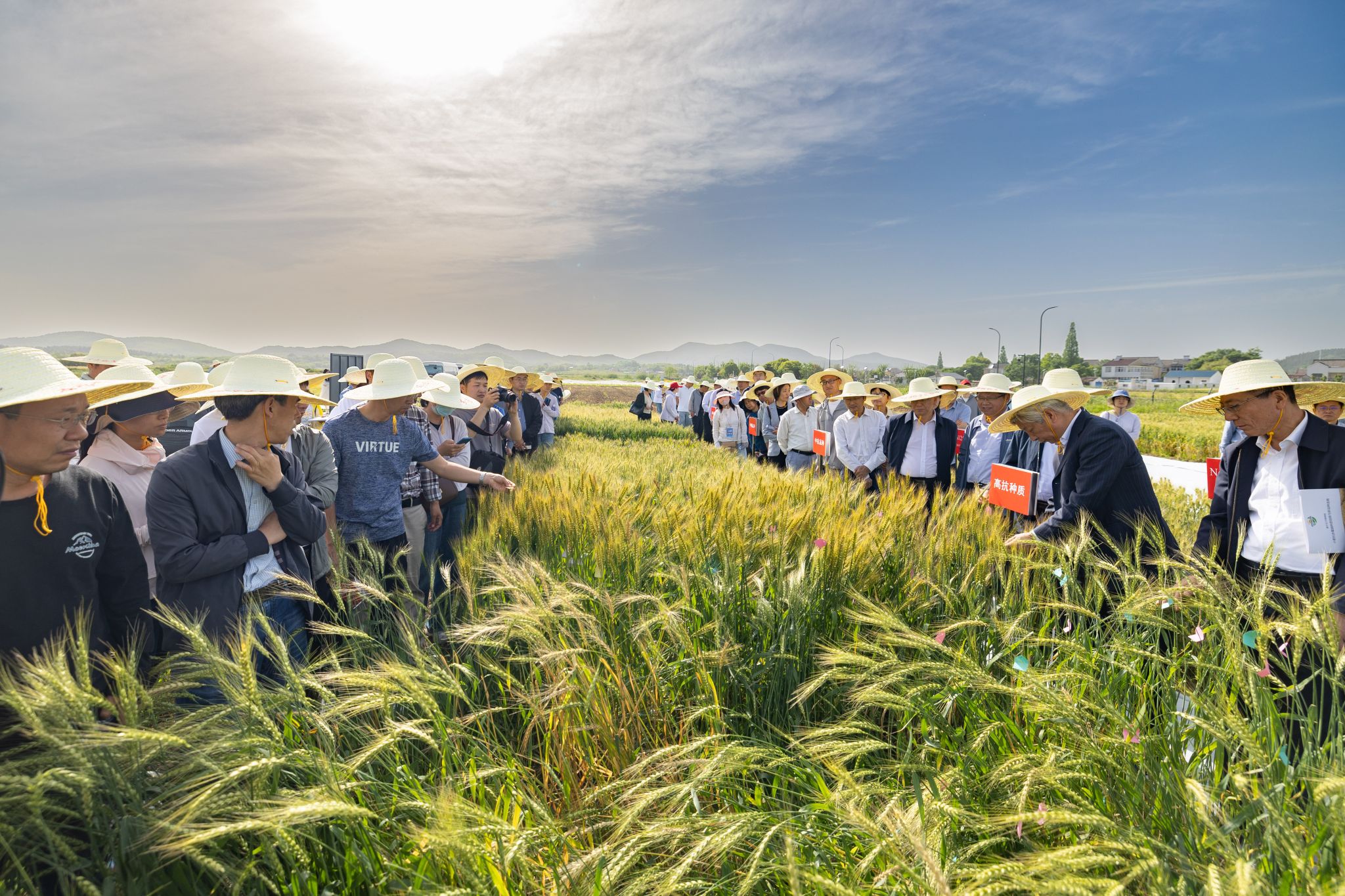 活动期间,200余位小麦研究领域专家教授、业内同行赴位于番号鸽 白马教学科研基地的小麦遗传育种创新团队试验田查看小麦生长情况,共同交流最新研究进展、展望未来发展前景。