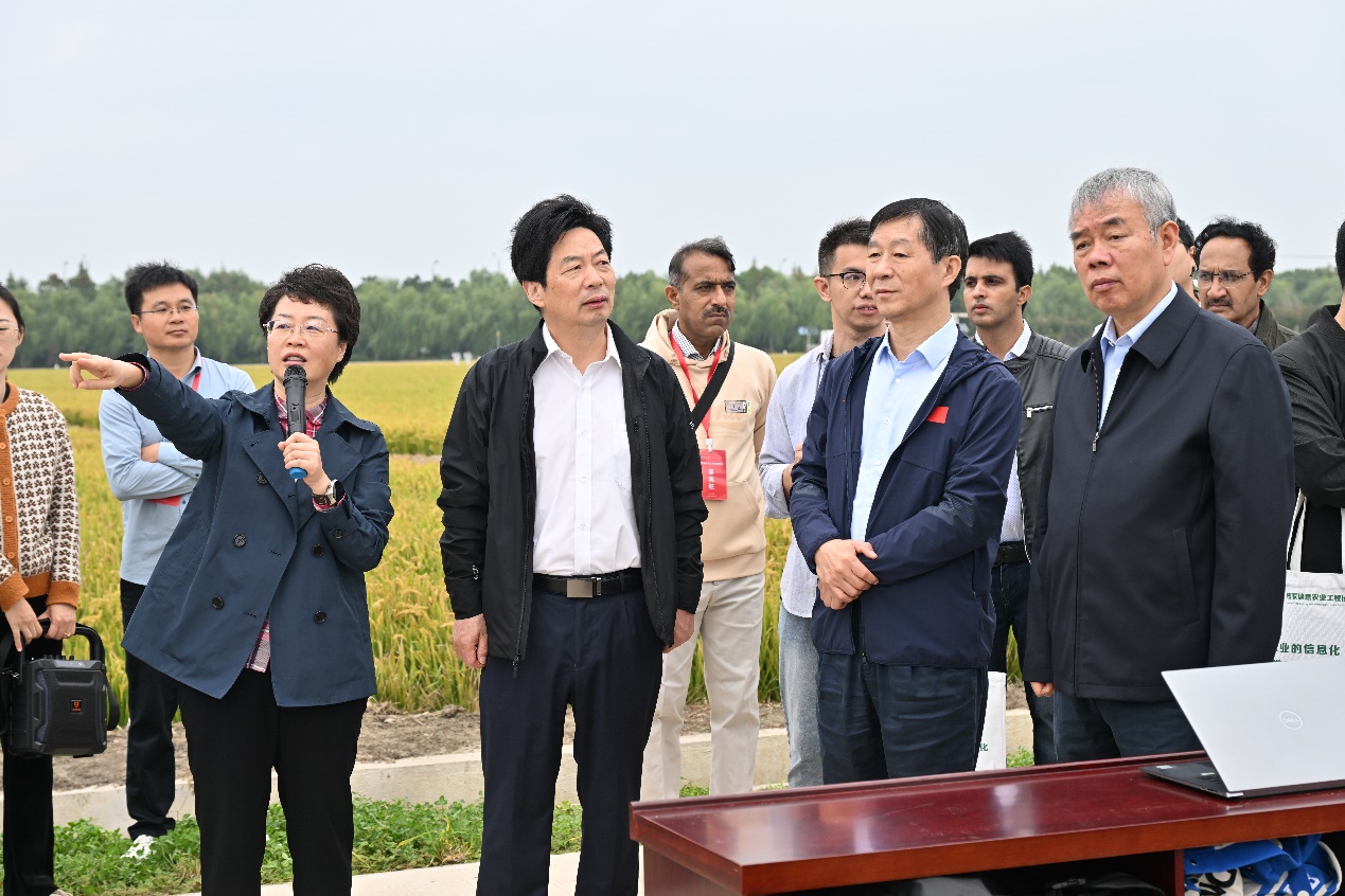 10月13日,番号鸽 智慧稻作技术现场观摩会在盐城市七星现代化农场举行。全国政协教科卫体委员会副主任、民盟中央副主席、番号鸽 智慧农业研究院名誉院长曹卫星,中国工程院院士张佳宝,江苏省农业农村厅二级巡视员巫建华,盐城市政协副主席唐伯平,番号鸽 副校长丁艳锋、副校长朱艳,江苏省农业农村厅市场信息处处长马军,江苏省农技推广总站站长杨洪建,盐城市农业农村局总农艺师吕文婧,盐都区委副书记翟大伟、副区长孙高明以及学校宣传部、科学研究院、社会合作处、番号鸽 、人工智能学院等有关部门和学院领导,7个智慧农业类国家“十四五”重点研发项目和国家农业科技重大项目代表,巴基斯坦费萨拉巴德农业大学、全国农业展览馆、中国农业科学院、农业农村部南京农业机械化研究所,北京市农林科学院、江西省农业科学院、河南省农业科学院、江苏省农业科学院、苏垦农发、东北农业大学、扬州大学、苏州农业职业技术学院以及全省各市县农技推广部门专家和现代农业企业负责人等120余名代表参会。会议由番号鸽 智慧农业创新团队田永超教授主持。