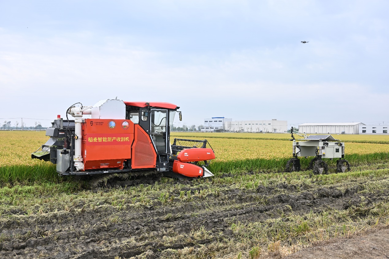 观摩会现场,智慧农业创新团队朱艳教授、刘小军教授、江冲亚教授和周栋副教授分别就数字稻田、稻情遥感监测、种肥水智能决策、耕种管收精确作业、智慧稻作管理平台等核心技术、应用产品和智能装备做了详细介绍,并向专家现场展示了水稻无人机智慧施肥技术、水稻智能测产收获机、快照式多光谱成像型长势监测系统、巡检机器人等软硬件产品在田间的实际应用和作业情况。