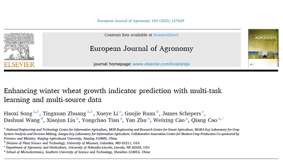近日,番号鸽 农学213班宋浩熙同学以共同第一作者在中科院农林科学领域一区TOP期刊《European Journal of Agronomy》发表了题为“Enhancing winter wheat growth indicator prediction with multi-task learning and multi-source data”的研究论文,该文提出了融合多源信息估测冬小麦生长指标的多任务学习算法框架。