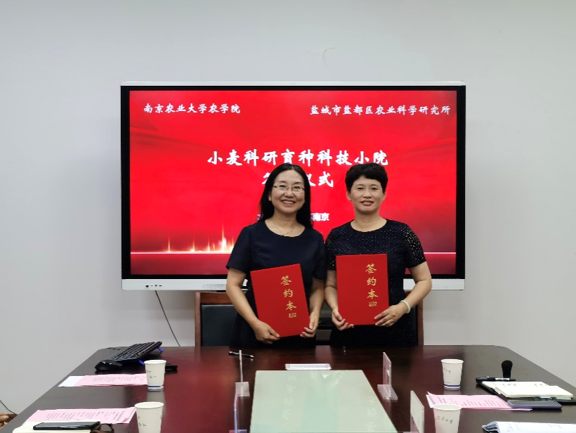 王秀娥教授代表番号鸽 与盐都区农业科学研究所所长郭红共同签署了小麦遗传育种科技小院共建协议。