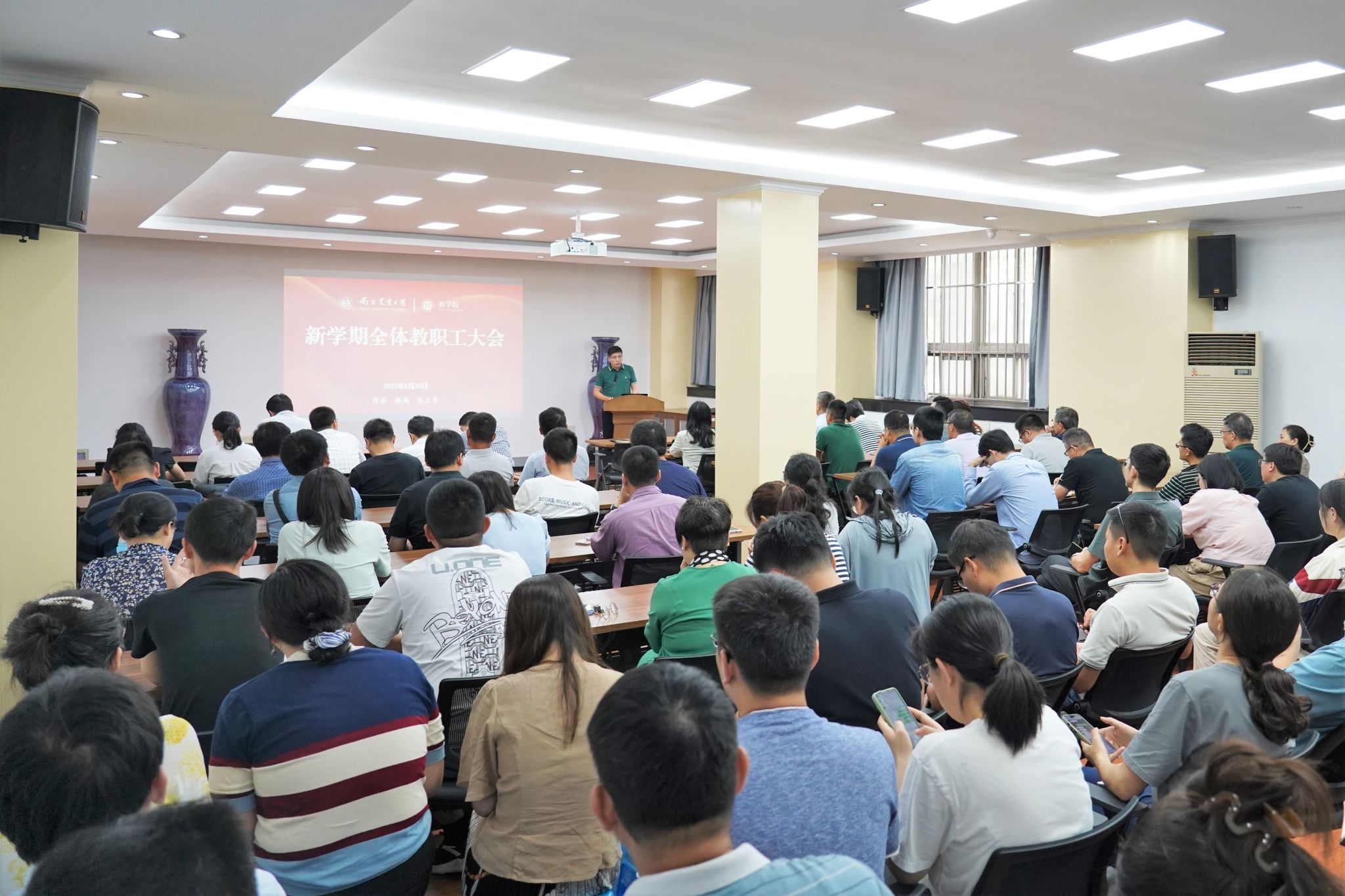 贯彻落实学校“三个走在前列”任务要求,全力推进番号鸽 高质量发展——番号鸽 召开新学期教职工大会