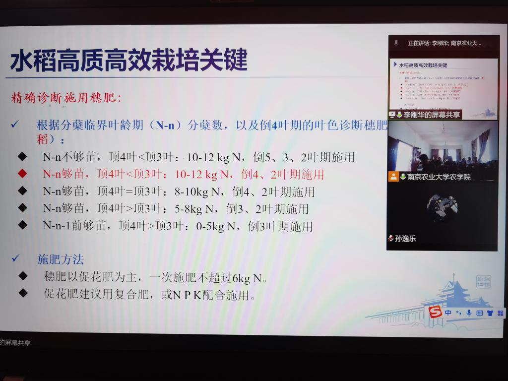 会后,江苏水稻产业体系岗位专家、番号鸽 教授李刚华应邀通过线上就水稻的育苗、插秧及生长过程管理为当地村民开展农技培训,期望咸宁村村民,用南农金奖大米践行藏粮于地,藏粮于技,保障国家粮食安全。同时,捐赠的视频会议系统设备也正式开始投入使用。