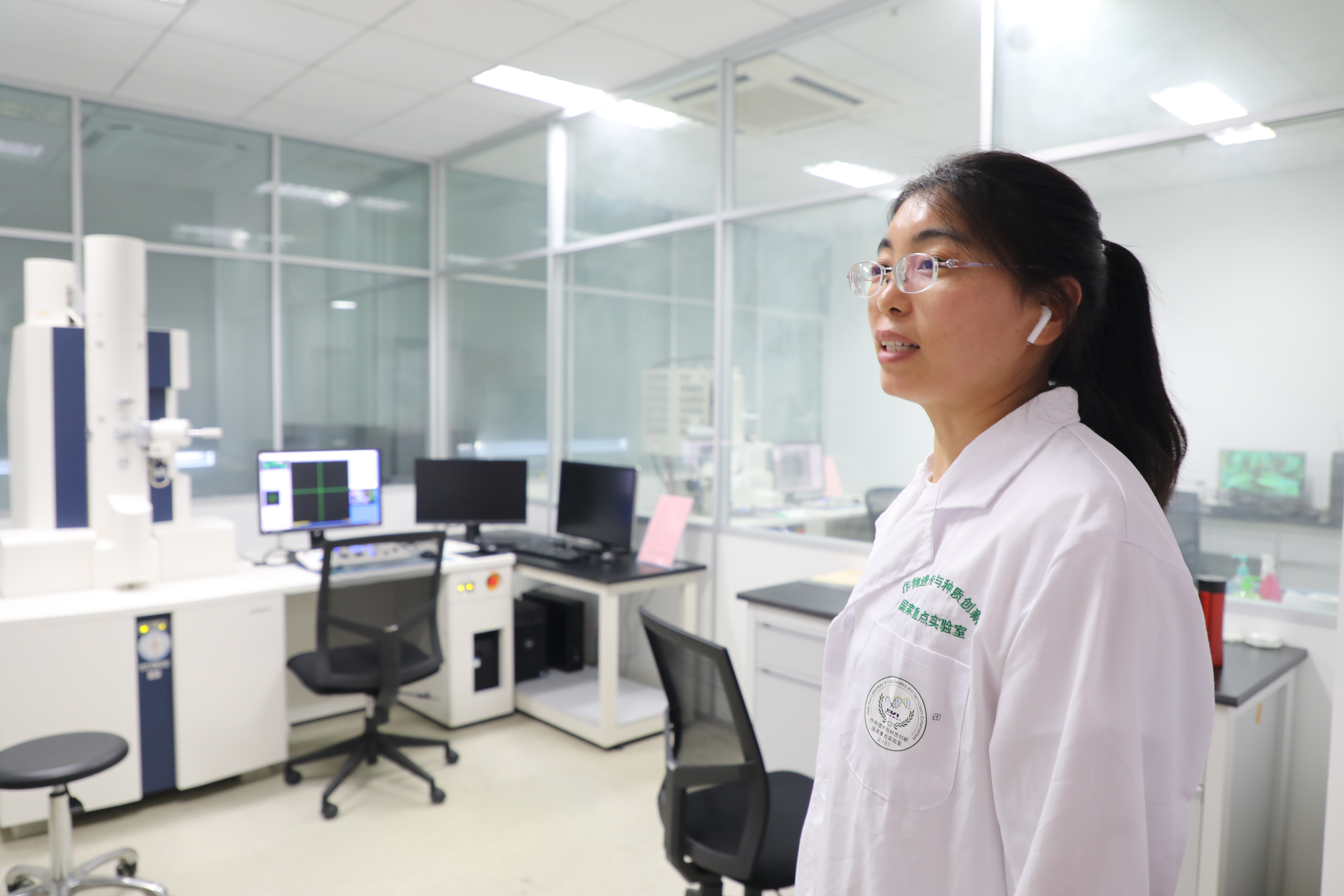 接着新生们在田瑞平老师的带领下,参观了作物遗传与种质创新国家重点实验室。作为一个 “开放、流动、联合、竞争”的实验室,其主要研究水稻、小麦、棉花、大豆等作物的“种质资源的遗传基础与创新、育种目标性状的基因与基因组分析、作物育种新方法和新品种选育”。实验室人才济济,拥有总价值近亿元的仪器,具备了在作物品质改良、功能基因组、蛋白质组学等领域良好的研究设施和条件。