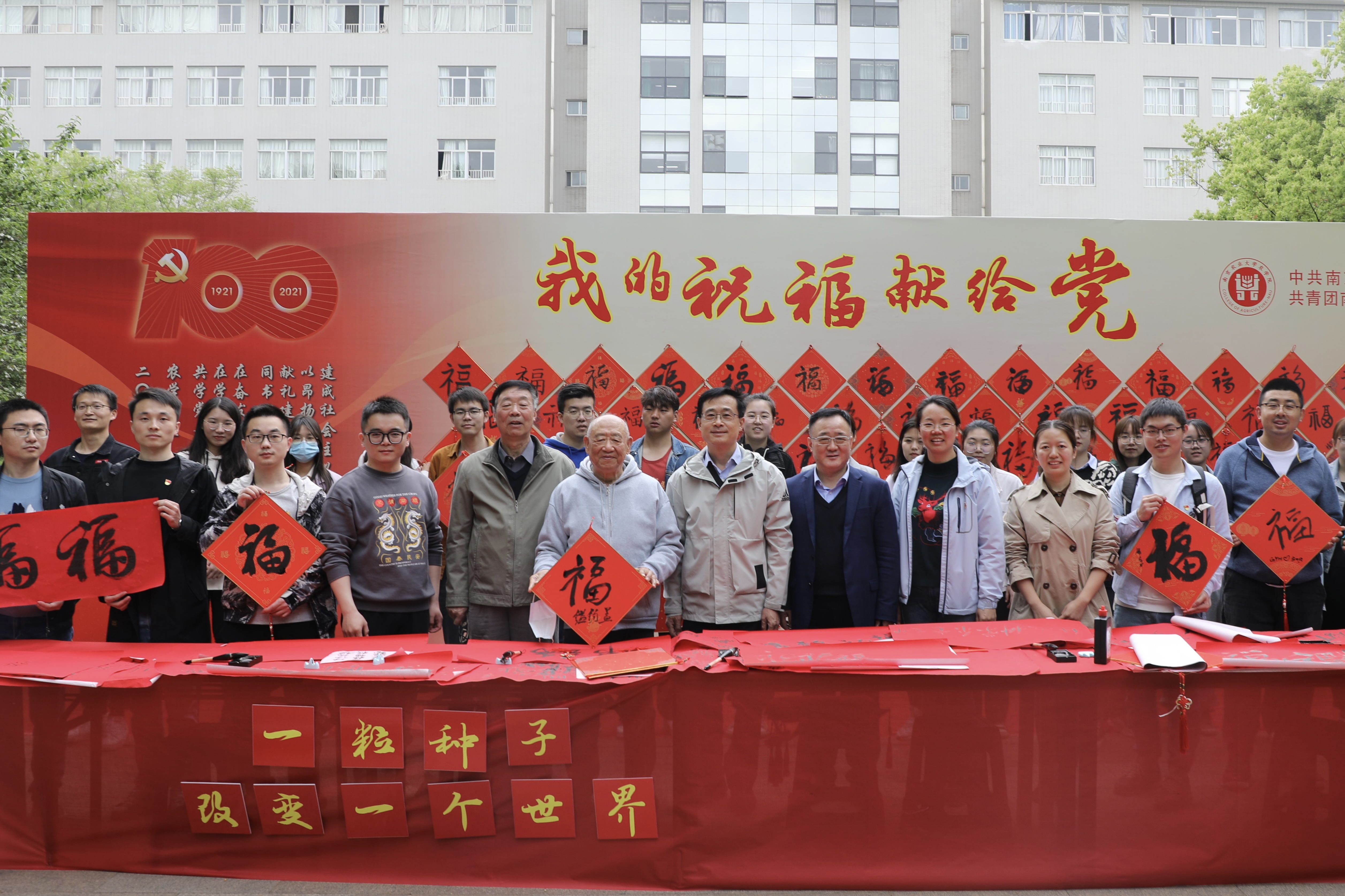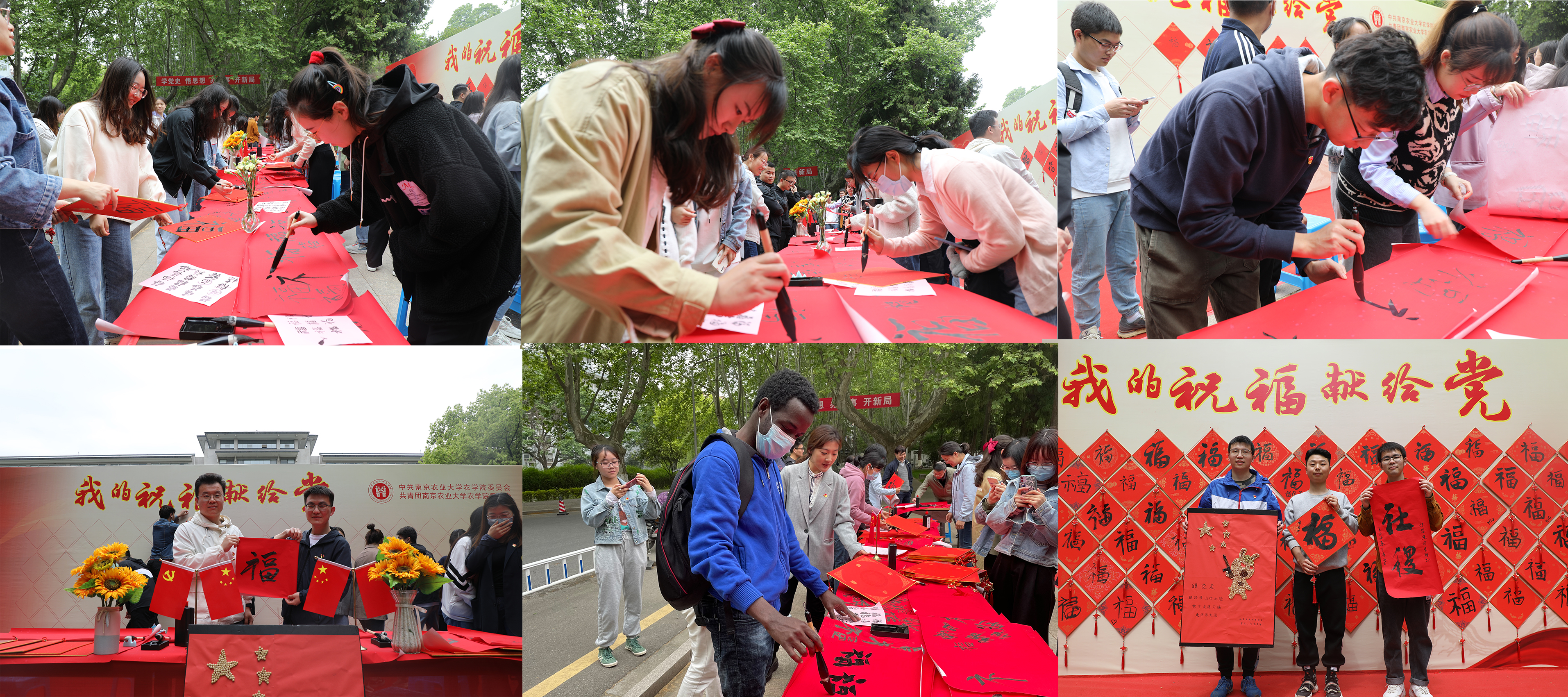 共学党史,同书百“福”,4月20日上午,番号鸽 “我的祝‘福’献给党—— “百福图”献礼建党100周年特色活动”在教学楼前广场举行。全校师生踊跃参与到此次活动中,共征集到“福”字百余幅。