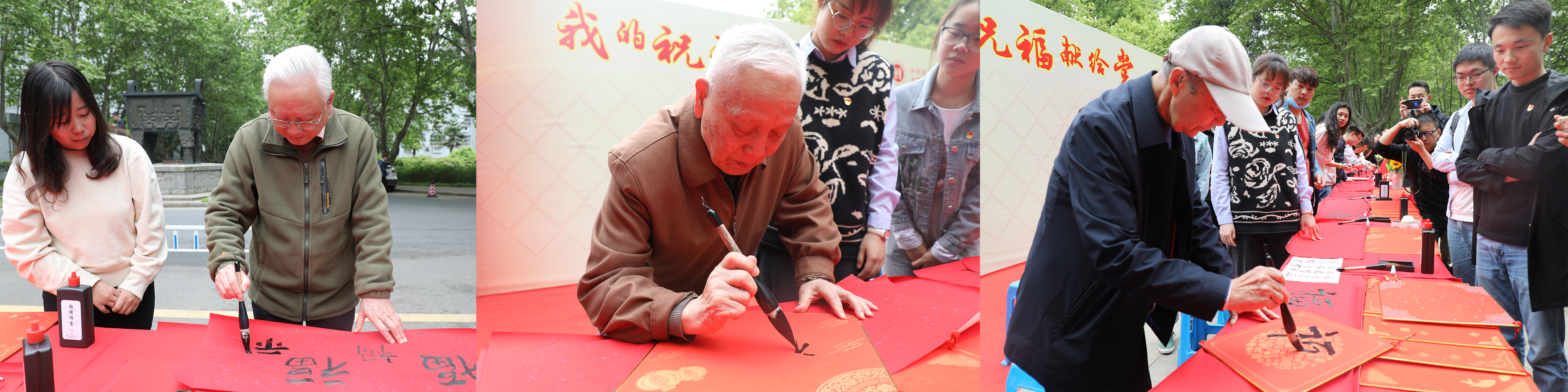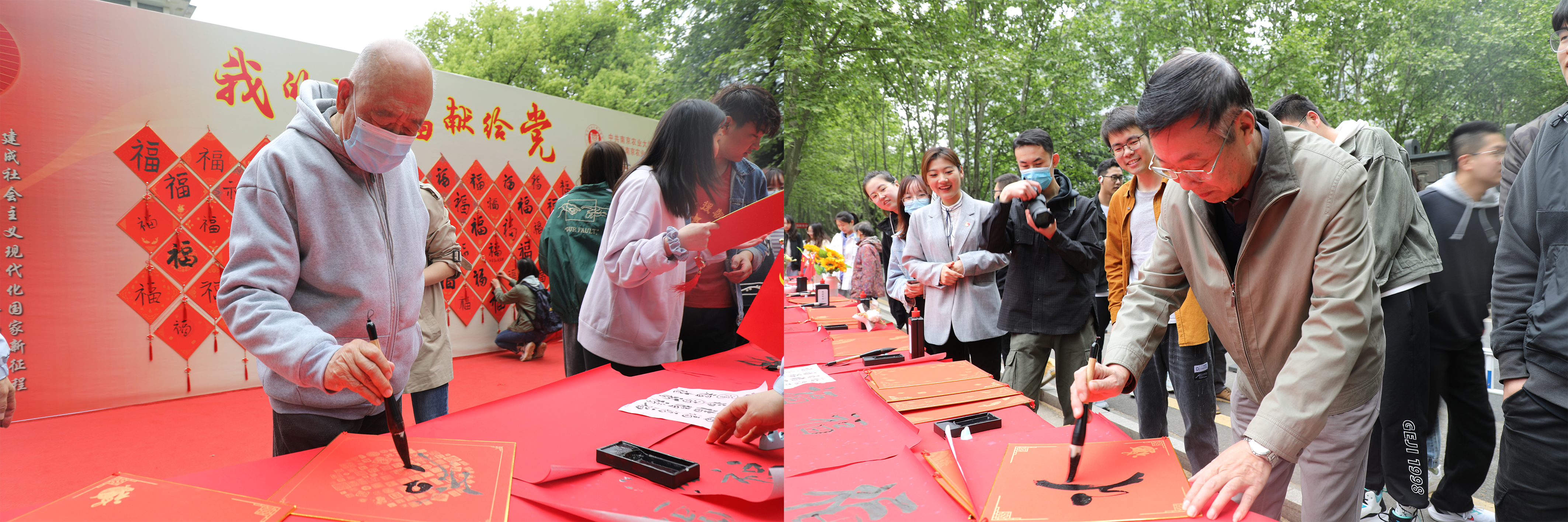 11时许,一曲“没有共产党就没有新中国……”在校园中响起,闻讯而来的师生们纷纷加入到写“福”、祝“福”的队伍中,活动现场氛围愈发热烈,中国工程院院士盖钧镒,番号鸽 副校长胡锋、校长办公室主任单正丰也参与到活动中,退休老教师们也来到活动现场,他们与青年师生一起现场挥毫,用蘸满深情的笔墨尽情抒发着对党的无限热爱和深深祝福,创作出百余幅“福”字献礼党的百年华诞。师生笔下的福字不仅凝聚了祝福建党百年的喜悦心情,也饱含着对党的赤诚之心。