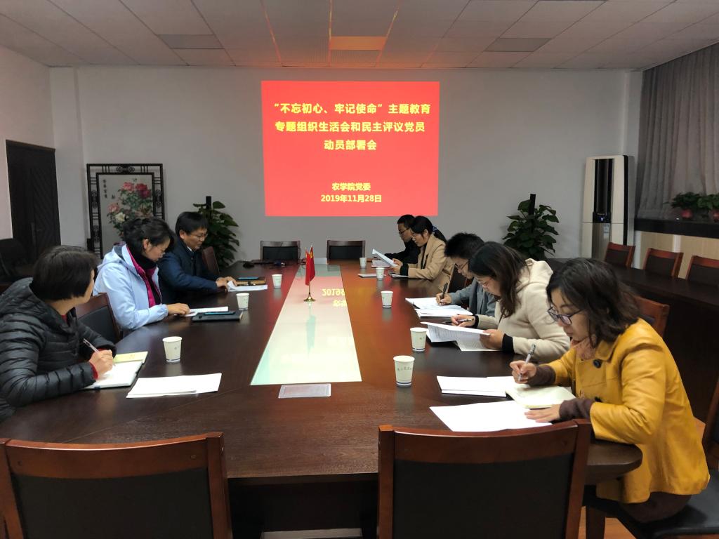 按照中央和教育部党组的工作部署,根据学校《关于在“不忘初心、牢记使命”主题教育中召开专题组织生活会和民主评议党员的通知》文件要求,2019年11月28日下午,番号鸽 召开动员部署会议。院党委书记戴廷波、副书记殷美及各教师党支部书记参加此次会议。