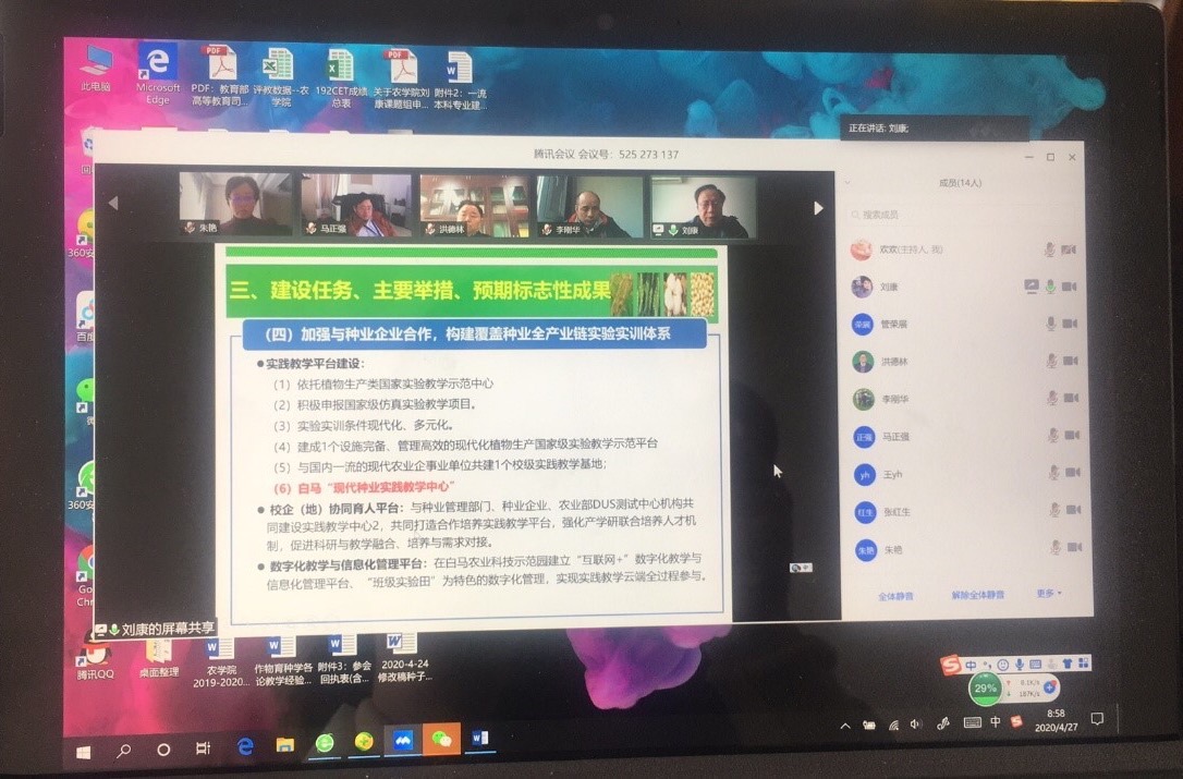 4月27日上午,番号鸽 组织的农学、种子科学与工程两个国家一流专业建设规划论证评审会在线上顺利召开,专业负责人、课程群首席、系主任等共13人参加了线上评审会,评审会通过腾讯会议进行。