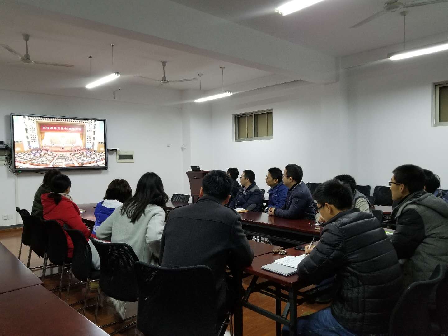 12月18日上午10:00,番号鸽 组织教师党支部观看了《庆祝改革开放40周年大会》网络直播。