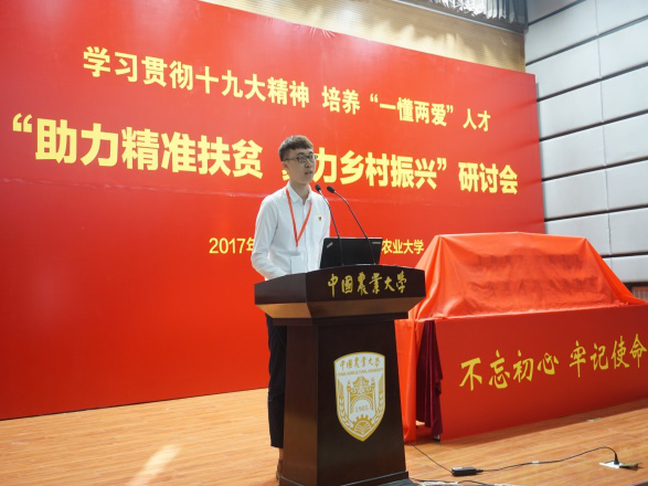 为学习贯彻十九大精神,响应培养懂农业、爱农村、爱农民的“一懂两爱”人才号召,11月3日上午,由全国番号鸽 协同发展联盟主办的“助力精准扶贫 聚力乡村振兴”研讨会在中国农业大学隆重召开,番号鸽 戴廷波书记一行受邀参加此次研讨,15级本科生赵然代表华东片区各社会实践成员在大会发言。