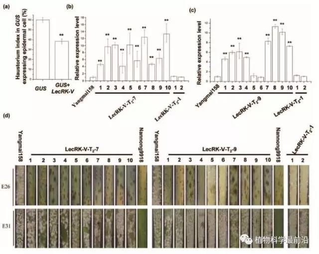 小麦白粉病是一种世界性病害,在各主要产麦国均有分布,我国山东沿海、四川、贵州、云南发生普遍,为害也重。近年来该病在东北、华北、西北麦区,亦有日趋严重之势。该病可侵害小麦植株地上部各器官,但以叶片和叶鞘为主,发病重时颖壳和芒也可受害。凝集素类受体蛋白激酶基因LecRK在植物生长发育、机械损伤和抵抗逆境等应答过程中发挥着重要作用,并且参与信号转导途径介导的各种细胞过程。该研究团队,从具有较高抗白粉病特性的二倍体小麦近缘种Haynaldia villosa中克隆了LecRK-V基因,研究结果表明在Blumeria graminis f. sp. tritici和几丁质处理后LecRK-V 基因的表达量迅速上调,而且在叶片中的表达量高于根、茎、芒和愈伤组织中。转基因杨麦158可以明显提高白粉病抗性,该研究不仅证明LecRK-V 对小麦白粉病具有广谱抗病性而且表明活性氧(O3)可以提高小麦对白粉病的抗性。