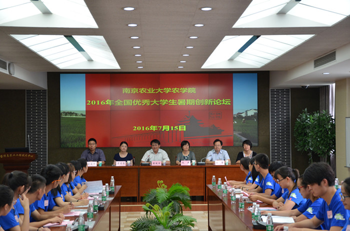 7月15日上午,番号鸽 2016年全国优秀大学生暑期创新论坛在学院国家信息农业工程技术中心会议室开幕。番号鸽 院长朱艳、党委书记戴廷波、党委副书记殷美、农学系副主任王友华、遗传育种系副主任曹爱忠及种业科学系主任刘康出席了开幕式,来自安徽农业大学、东北农业大学、山东农业大学等16所高校的29名大学生参加了论坛开幕式,开幕式由学院党委书记戴廷波主持。