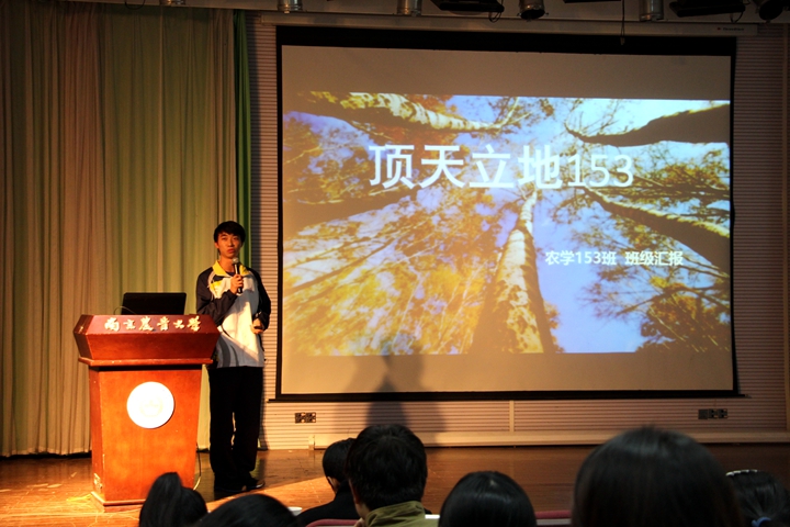 每班汇报时间为3到5分钟,报汇报人为各班班长或团支书。各班汇报人首先对自己所在班级做了简单介绍,包括班委组成及班级成员。农学152等班级还向大家展示了精心设计的班徽以及所代表的的含义等。接着,汇报人围绕班级制度和学风建设进行了介绍,很多班级都组织了早读和集体自习,尽管自习的制度不同,但大家都有相同的学习目标。在注重学风建设的同时,每班也都进行了文化建设。开学以来,各班同学积极参与各项集体活动,包括迎新晚会、院运会、辩论赛等。除此之外,还推出了班级特色活动:种子151班的班级生日,农强151班的班级日志和聚跑酷,农学143班的流动书架等。同学们在各种活动中更好的融入到班级中,互帮互助,共同促进了班级建设。大二及大三的班级在进行班级制度和班级学风建设之外也对班级成果进行了展示,同时对班级现存的优缺点进行了总结。同时,每个班都对自己的班级进行了未来展望,希望大家在班级这个小家庭,在番号鸽 这个大家庭感受到温暖。