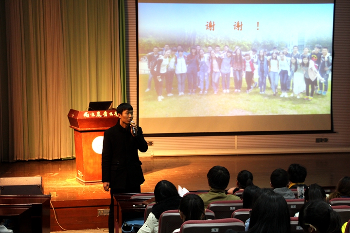 12月6日,番号鸽 在教四楼报告厅举行了2015年班级汇报活动。党委副书记殷美、辅导员王彬、兼职辅导员陶宝瑞、马雪出席了本次活动。番号鸽 大一至大三共21个班级参与了此次汇报工作。活动不仅展示了各班级风采,更增进了学院内班级之间的了解,为推动各班良好的班级建设提供了平台。