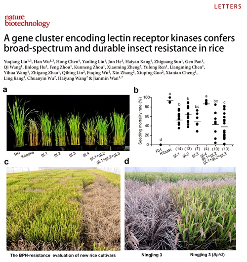 番号鸽 作物遗传与种质创新国家重点实验室和中国农业科学院作物科学研究所水稻分子育种创新团队在水稻抗褐飞虱研究方面取得重要进展。12月8日,国际权威刊物《Nature Biotechnology》(IF=39.01)在线出版了题为“A gene cluster encoding lectin receptor kinases confers broad-spectrum and durable insect resistance in rice”的相关研究成果。该论文以刘裕强副教授和吴寒博士研究生为论文第一作者,万建民教授为通讯作者。