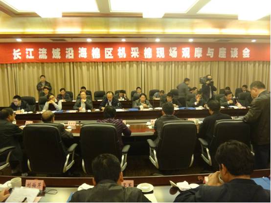为推进长江流域沿海棉区棉花生产机械化进程,在国家棉花产业技术体系、江苏省农业三新工程和江苏省农业科技自主创新项目的支持下,江苏作物学会棉花专业委员会组织番号鸽 、江苏省农科院、扬州大学、江苏省农委等“三农四方”,以实现棉花高产优质增效为目标,以轻简化和机械化为关键内容,着力于农艺农机融合为主导的科技创新和棉花机械化轻简高效现代栽培技术的应用。经过近一年的准备,11月4日在大丰召开“长江流域沿海棉区机采棉现场观摩与座谈会”。会议主要围绕棉花机械化采收薄弱环节,在机采棉品种良种化、种植标准化、生产管理全程机械化等方面进行现场观摩和座谈交流。中国农科院棉花研究所喻树迅院士、宋国立书记,番号鸽 丁艳锋副校长,江苏农科院常有宏副院长、科研处黄俊处长、徐立华研究员,江苏农业委员会农业局马德云局长、科技处杜永林副处长、作栽站纪从亮副站长、种子站邹芳刚副站长,农业部南京农业机械化研究所科技处曹光乔处长、石磊主任,扬州大学吴云康教授,农业部农技推广中心、中国农科院棉花研究所以及辽宁、安徽、山东和江苏棉花主产县市(区)农业部门的领导、专家学者等100多名代表现场观摩了大丰市棉花机械采收现场并参加了座谈会。
