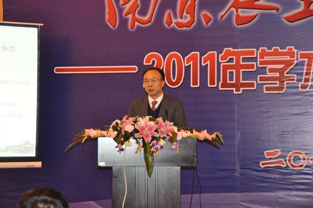 戴廷波回顾了学院2011年在人才培养、科学研究、社会服务等方面的工作及成绩。他强调,高层次人才、重大科研成果产出、研究生培养质量是制约学院发展的关键,希望在校领导及各部门的大力支持下,在全院教职工的共同努力下,学院能够不断取得新突破、新发展。