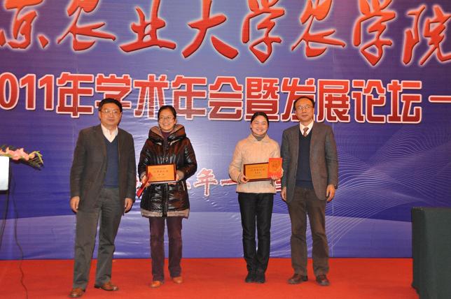 中国工程院院士、江苏省里下河地区农科所程顺和,南京市农业委员会主任方中友2位校友获得杰出服务奖,曹爱忠、黄骥2位年轻副教授获优秀新人奖。中国工程院院士盖钧镒、江苏省副省长曹卫星、中国农业科学院作物所所长万建民、番号鸽 副校长丁艳锋分别为以上获奖人员逐一颁奖。此次颁奖仪式简朴而隆重,广大教师深受鼓舞,在与会人员热烈的掌声、热情的祝贺声中,番号鸽 英才奖励基金第二届杰出服务奖、优秀新人奖颁奖仪式圆满结束。