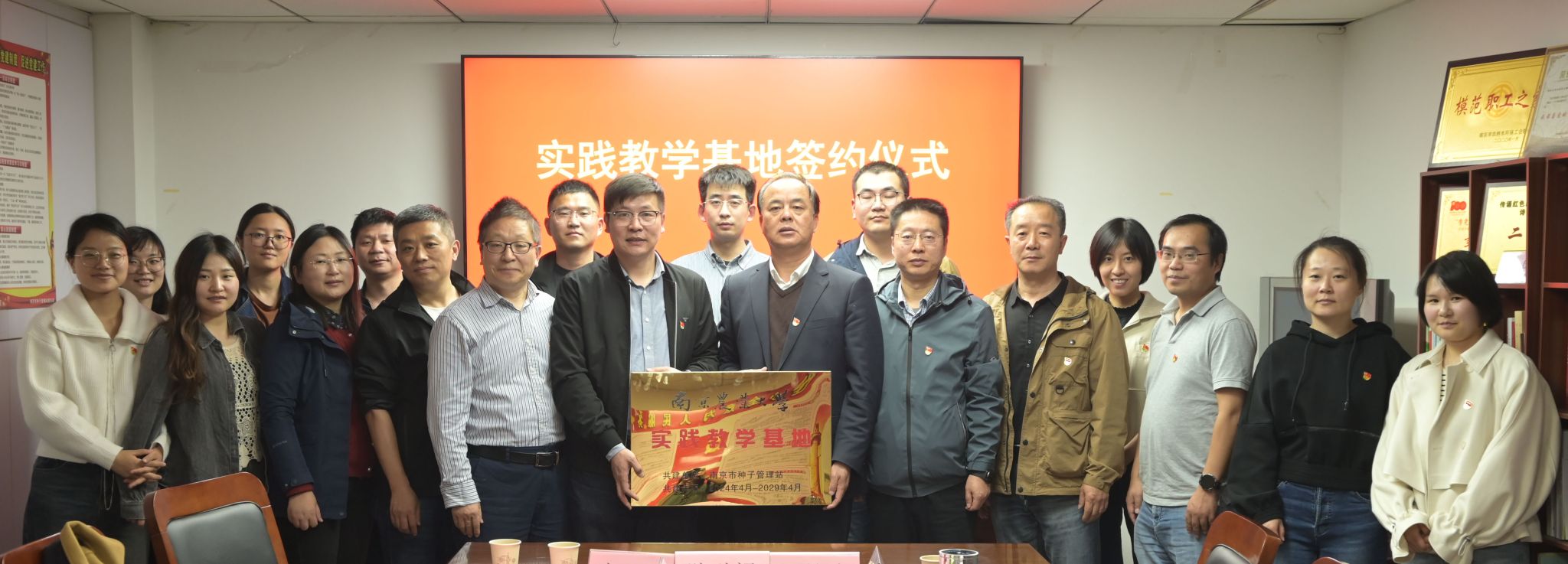 邢后银站长致欢迎辞,并介绍了南京市种子管理站的主要职能和党支部建设情况。庄森书记介绍了番号鸽 的基本情况,回顾和肯定了双方的合作基础,对南京市种子管理站长期以来对番号鸽 建设发展给予的大力支持表示由衷地感谢。种业科学系教师党支部书记鲍永美教授和南京市种子管理站党支部书记邢后银站长签订了支部共建协议,种子科学与工程产教融合品牌专业负责人张红生教授与南京市种子管理站邢后银站长签订了产教融合实践教学基地合作协议,并进行了揭牌仪式。随后,双方支部党员进行了支部建设和合作意向交流。邢后银站长交流了在种子行业发展调研和青年党员业务能力培养方面的举措和计划;张红生教授表达了在种子检测方面加强合作的意向;鲍永美教授提出了要持续加强基地建设并联合开展本科生教学实习和专业硕士学位研究生实践环节的教学;钱虎君副教授建议聘请种子管理站专家来校讲课,加强种业双师型教师队伍建设。