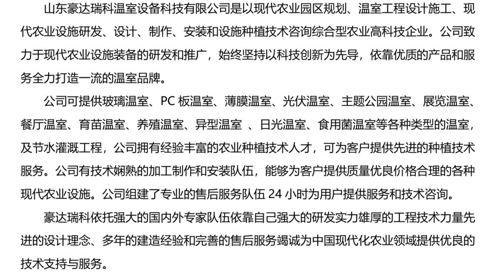 山东豪达瑞科温室设备科技有限公司