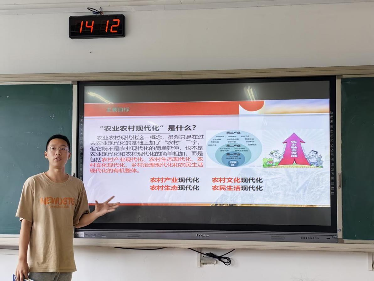 杜舜禹结合近期的农业相关政策,介绍了农业强国建设的时代背景,揭示了目前我国农业发展面临的问题与挑战,以现实的严峻性启发农科青年学子关注焦点问题,积极响应党的号召,把个人利益同国家利益联系起来,将个人理想融入到实现中国梦的伟大理想中,积极承担时代责任。