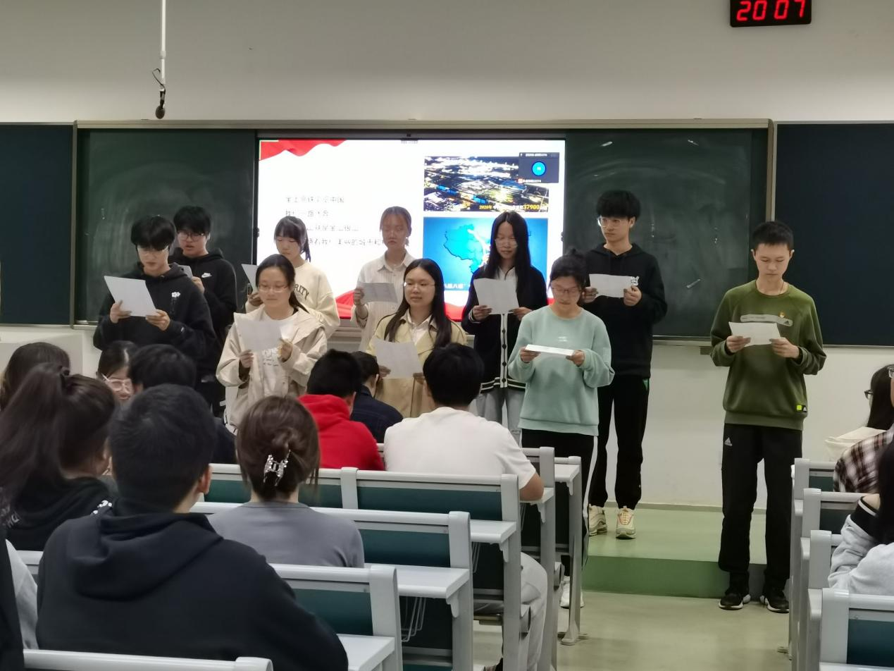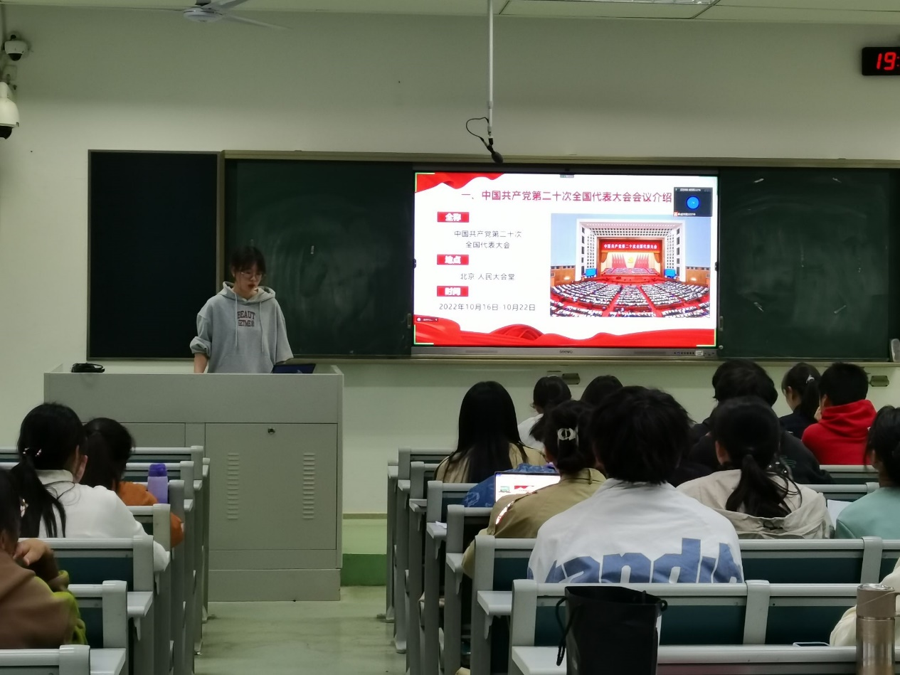 第一部分“大会概述”由杜洋同学主讲,为我们介绍了二十大的基本情况、中国共产党全国代表大会的地位和主要工作、历史上一些重要党代表大会以及会议主要内容,并通过视频让我们了解到二十大对世界格局具有的重要影响。学习了一些基本知识后,大家活跃参与知识问答环节,并对二十大召开的意义展开讨论。