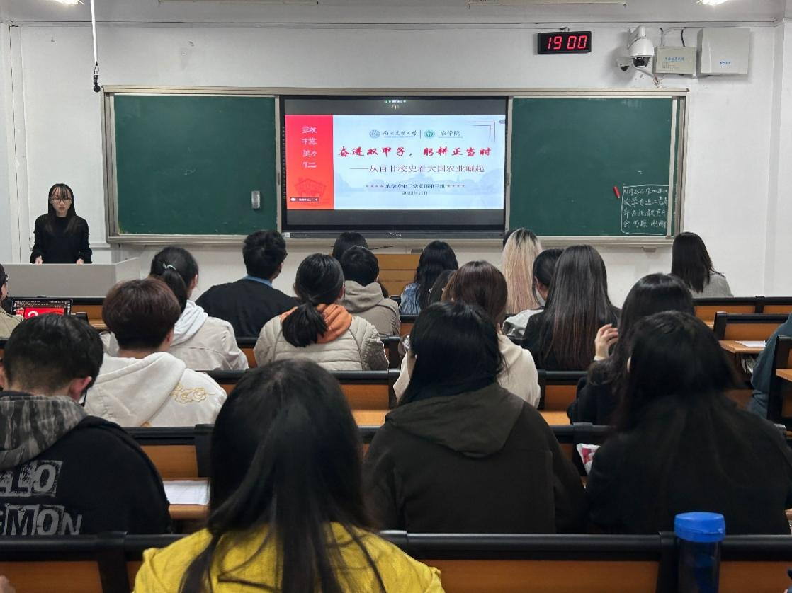首先,主讲同学向大家讲解番号鸽 120年发展历程,以此作为切入点,为大家介绍120年来南农凝聚的精神、南农获得的成就、南农在国际农业发展中的作为,并联系中国农业成就,从南农发展看向大国农业崛起。
