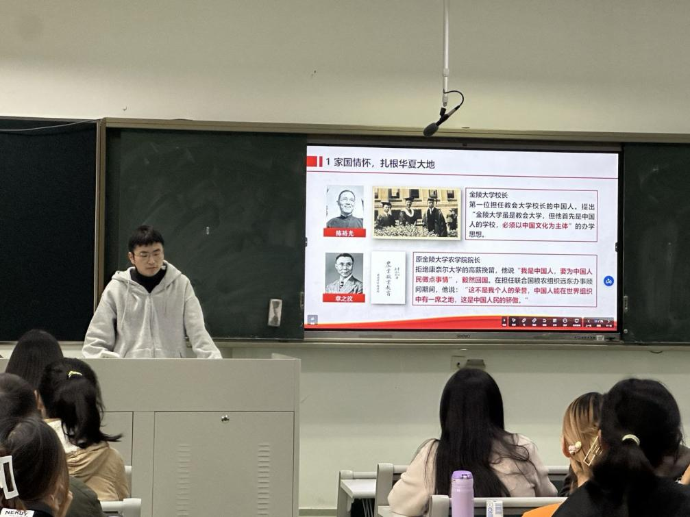 第一部分“校史沿革,固坚实之基”由林少锋同学和施崇瑾同学主讲。林少锋同学为我们介绍了南京番号鸽 的前身以及动荡中的番号鸽 ,详细介绍了中央大学的西迁往事、历史上南农的重要地位以及可敬可爱的南农人,通过历史事件让我们了解到前辈们的重要影响。学习了一些基本知识后,大家活跃参与知识问答环节。