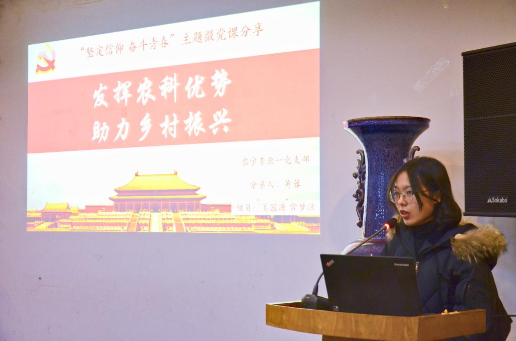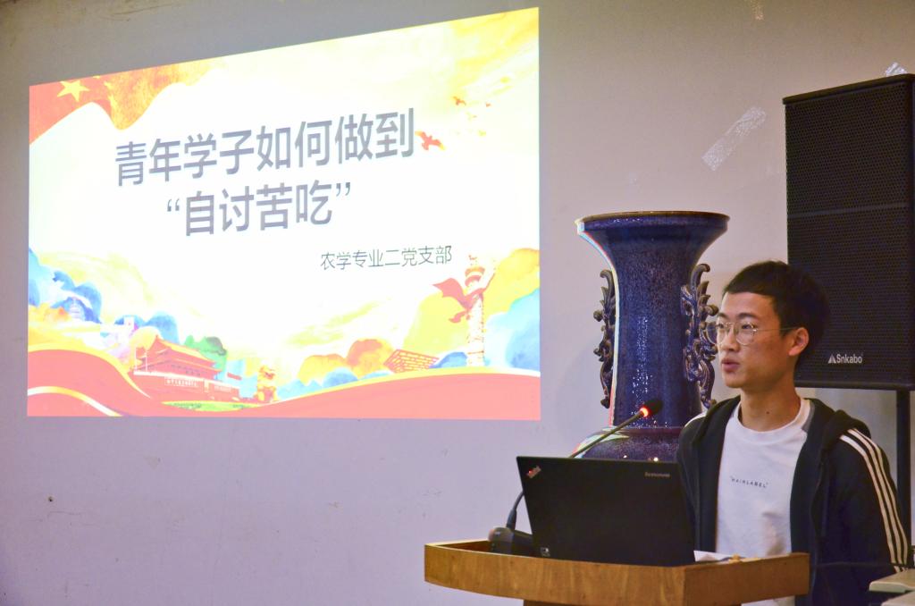 会前,番号鸽 分党校展示了本院研究生党支部制作的微党课材料,给予大家参考与学习。随后,农学专业一党支部、农学专业二党支部、植物实验专业党支部、种子专业党支部等支部的代表以农科学子的身份,从“用全球眼光看中国发展”、“新中国成立以来成就”、“习近平总书记给全国涉农高校回信精神”、“农科学子如何助力乡村振兴”、“青年学子如何做到‘自讨苦吃’”等方面出发,从不同的视角展开分享,展示了新中国成立70年来的光辉历程和伟大成就,展现农科学子的思考和青年力量。
