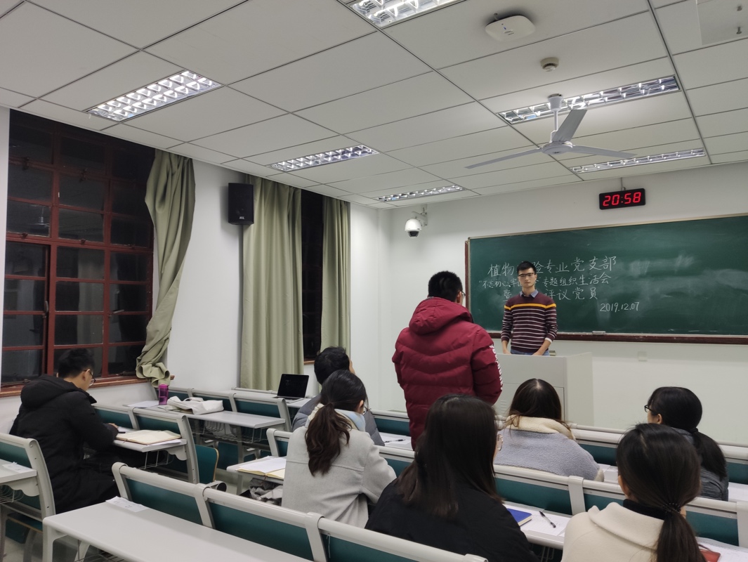 植物实验专业党支部在主楼230教室召开“不忘初心、牢记使命”专题组织生活会及年度民主评议党员大会,主题教育活动由支部书记王宁主持。