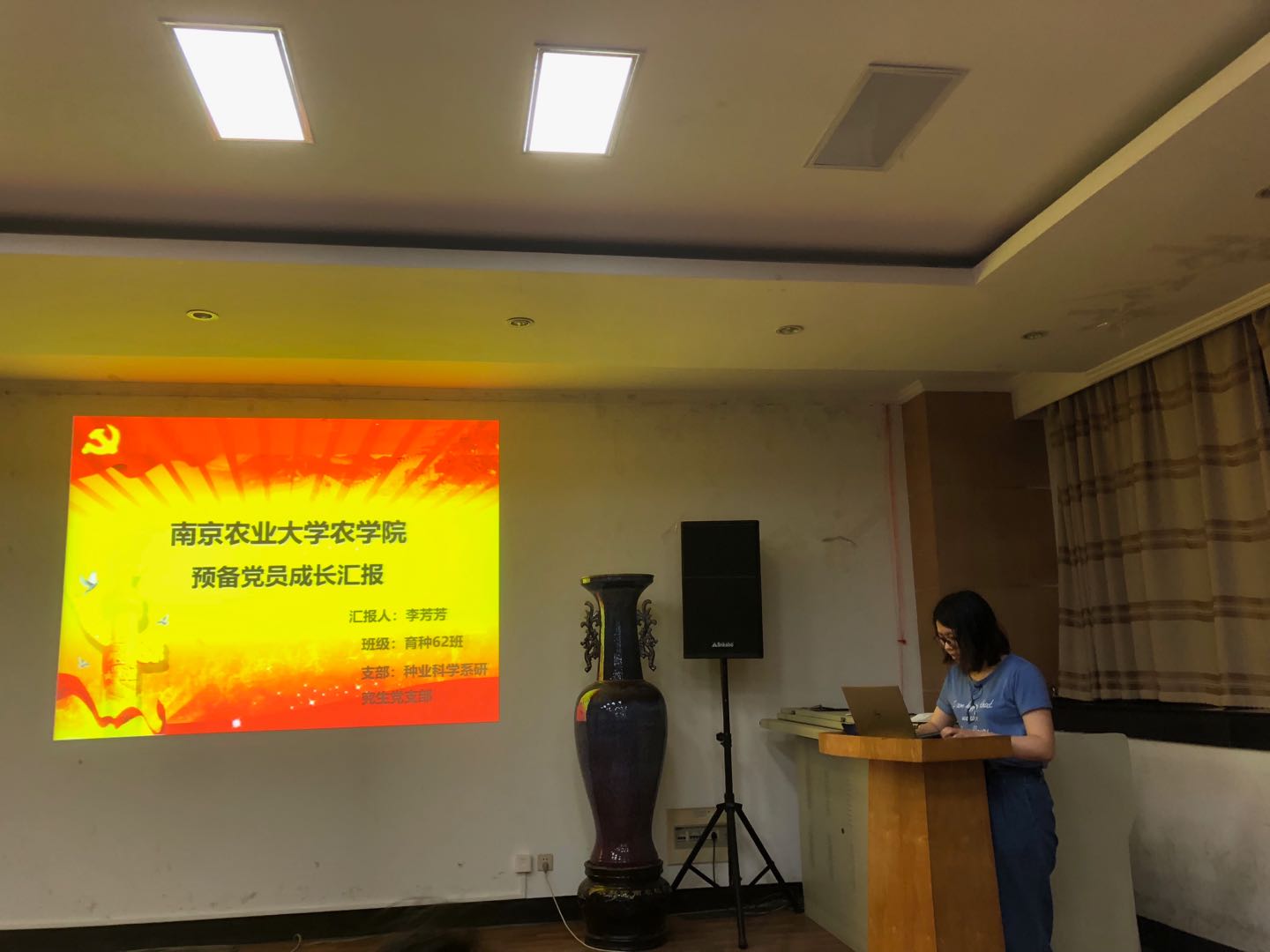 会议第二部分是未满一年预备党员、积极分子汇报。同学们利用PPT展示,从思想、生活、学习、科研等方面汇报了过去半年的表现,并指出不足,提出改善措施。
