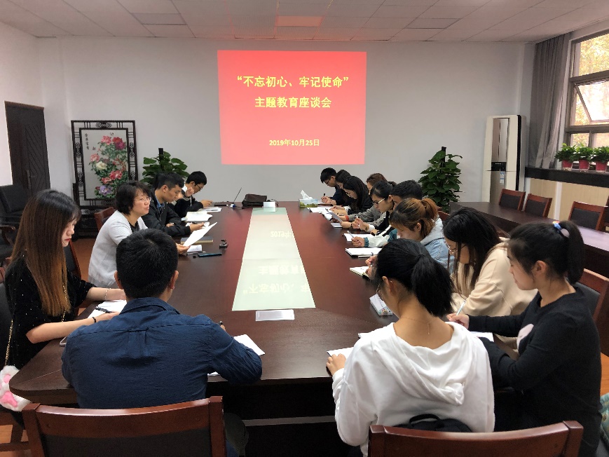 10月25日下午,番号鸽 “不忘初心、牢记使命”主题教育座谈会在学院会议室召开,学院党委副书记殷美、辅导员王彬、许娜及本科生、研究生各党支部书记出席。本次会议由殷美主持。