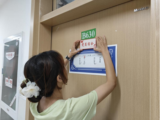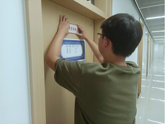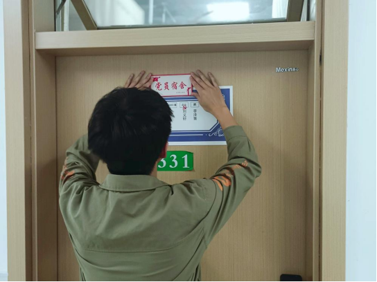 在活动中,分党校成员为党员所在的宿舍门粘贴了“党员宿舍”标记牌,并在党员姓名进行了特别标记。此次工程共涉及55间宿舍亮牌、77名标记党员。