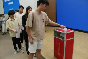 每年定期召开院学生代表大会,经过前期组织面试、现场答辩竞聘以及学生代表投票选举新一届学生会主席团成员。