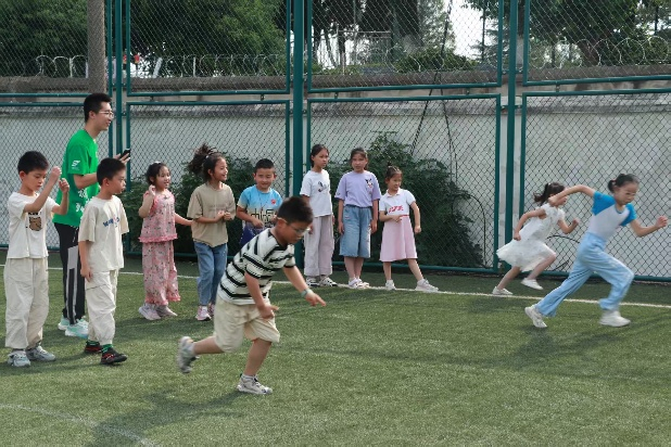 创意手工环节将活动推向高潮,孩子们化身 “黏土魔法师” 和 “七彩魔法师”,用黏土捏出充满童趣的立体造型,用彩笔描绘缤纷的丰收画卷,尽情发挥想象力与创造力。实践团为这些 “小魔法师” 送上日记本和积木作为鼓励。活动尾声,户外草坪上的迎面接力赛充满欢声笑语,孩子们在阳光下肆意奔跑、击掌接力,获胜小队手捧奖品积木,笑容格外灿烂。